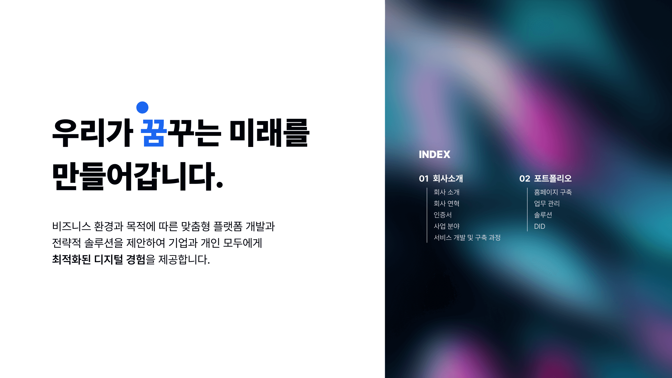 변화의 중심에서 늘 한걸음 앞서 나아가며, 더 나은 내일을 만드는 IT 파트너로 함께하겠습니다.